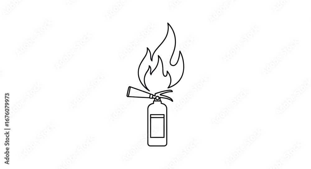 Obraz na plátně Line drawing of fire extinguisher engulfed in flames.
