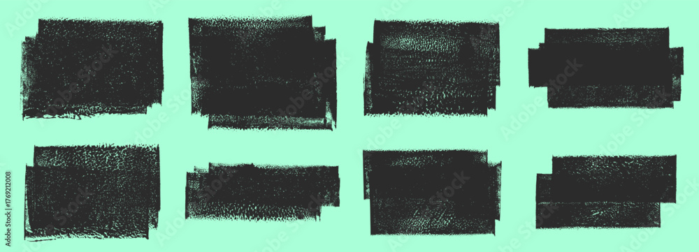 Obraz na plátně Linocut, relief printing layered rectangles grungy textures vector set