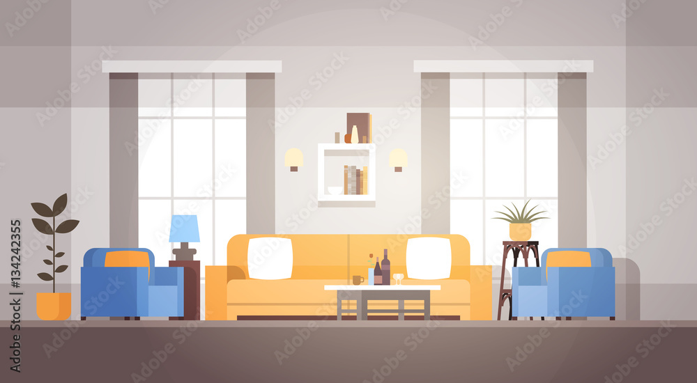 Fotografie Living Room Interior Home Modern Apartment Design Flat Vector Illustration
