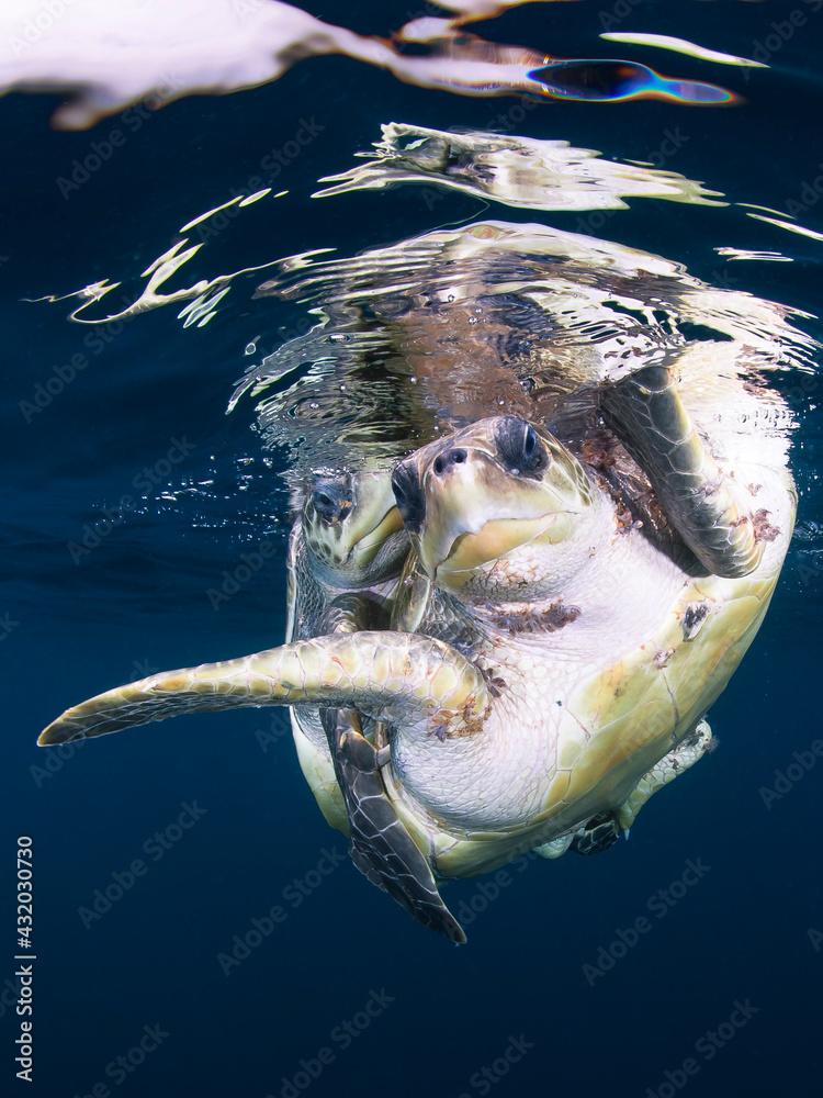 Obraz na plátně Loggerhead turtles mating 5 miles off the coast, Pacific Ocean, Ixtapa, M Mexico