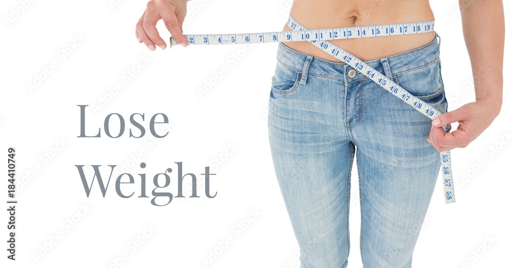 Fotografie Lose weight text and woman measuring waist