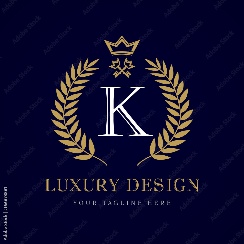 Fotografie Luxury calligraphic letter K crown & key monogram logo