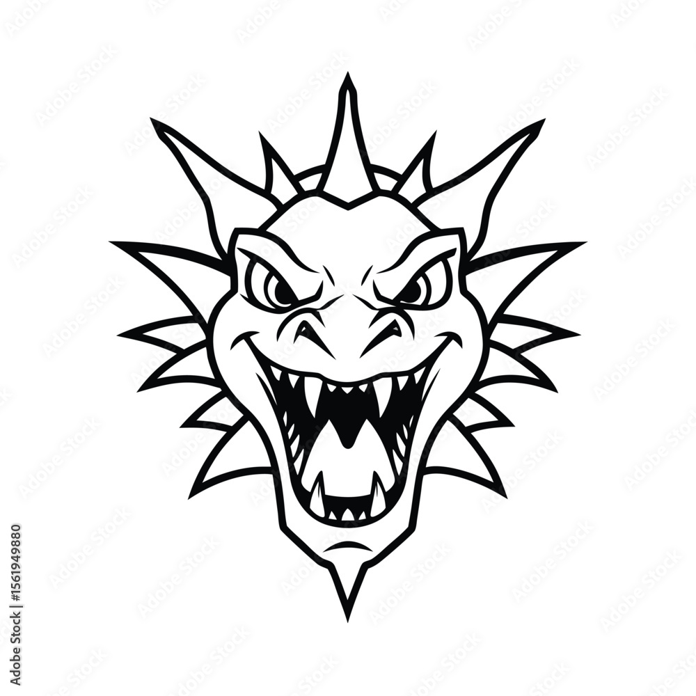 Fotografie mad dragon head with spiky outline and fierce expression version one on white ba