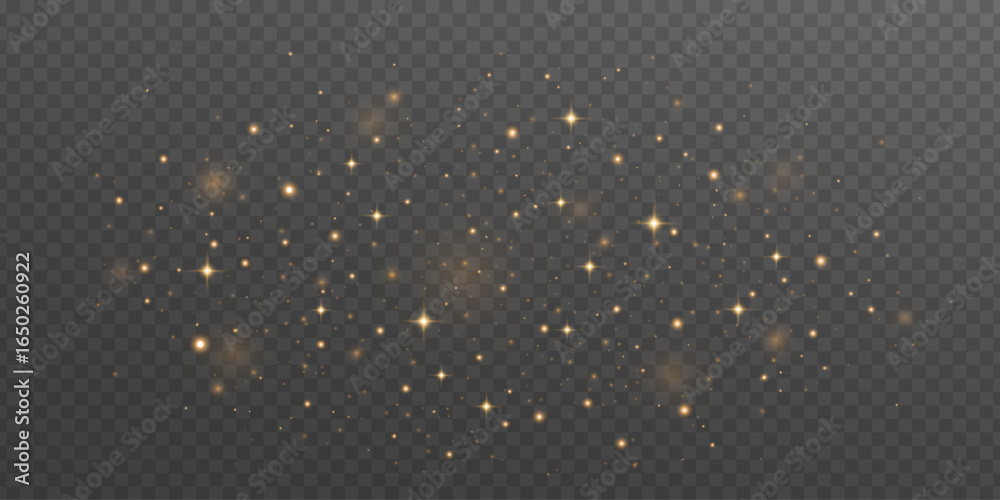 Fotografie Magical golden dust with glowing bright particles and sparkling stars on transparent background