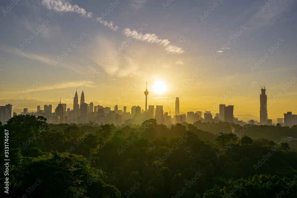 Obraz na plátně Majestic sunrise view over down town Kuala Lumpur, Malaysia.