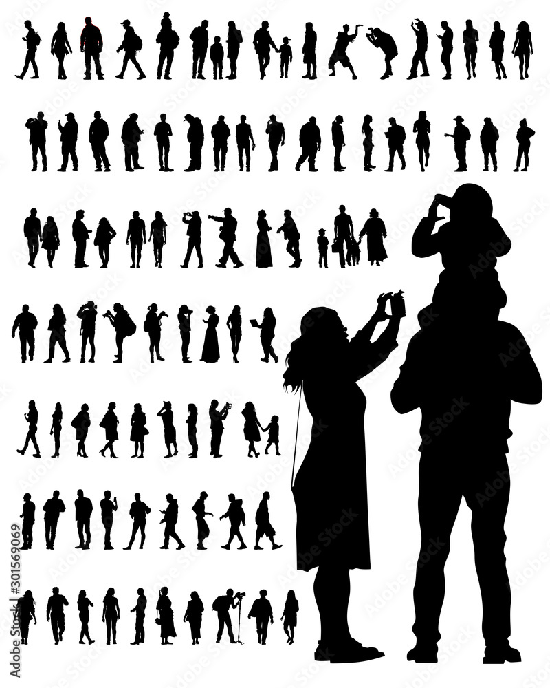 Fotografie Man and woman walking down street on white background