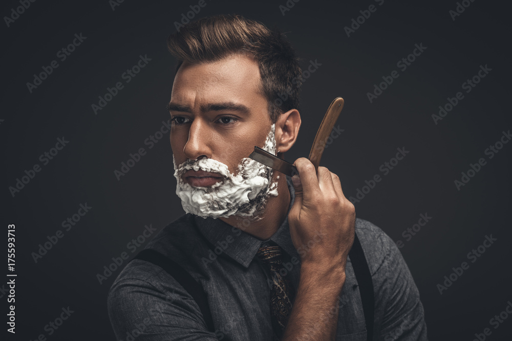 Obraz na plátně man shaving with straight razor