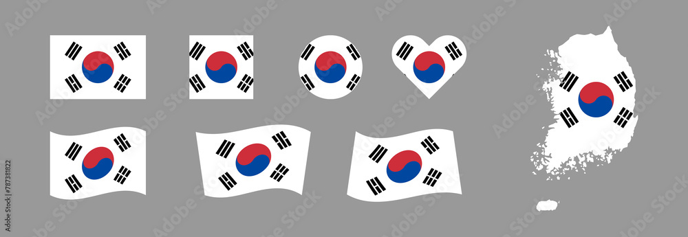 Fotografie Map and flag set of South Korea. Country of Asia. Vector