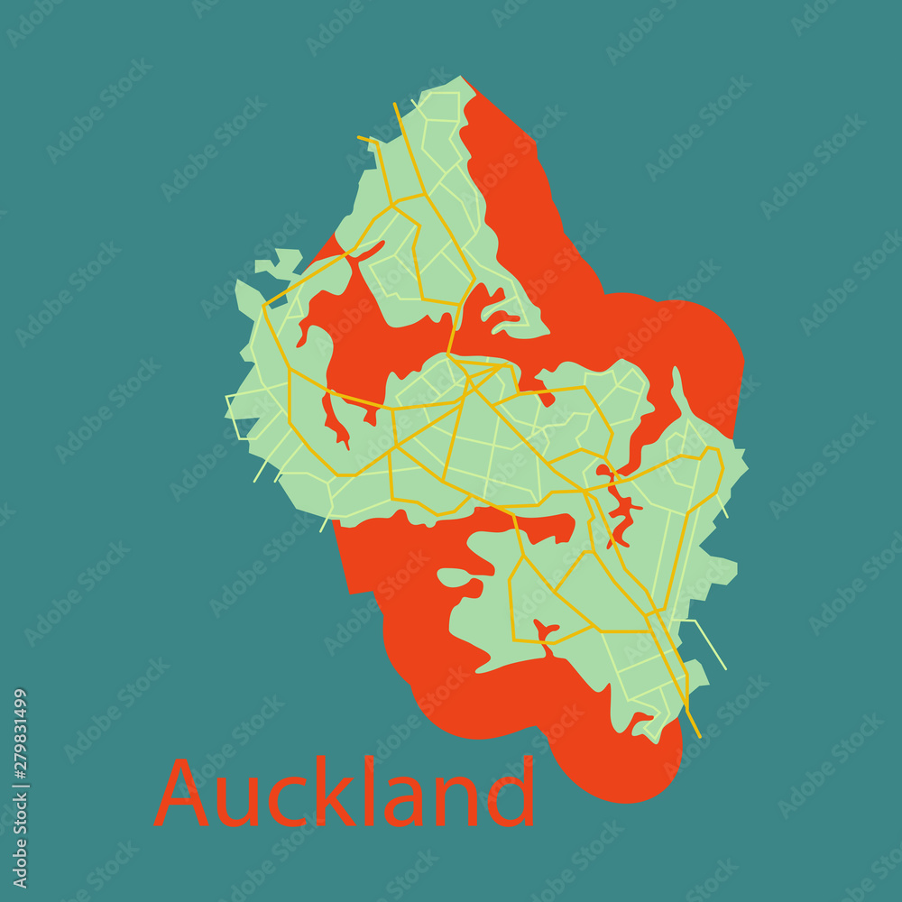 Fotografie Map - Auckland (New Zealand) - Flat -Illustration