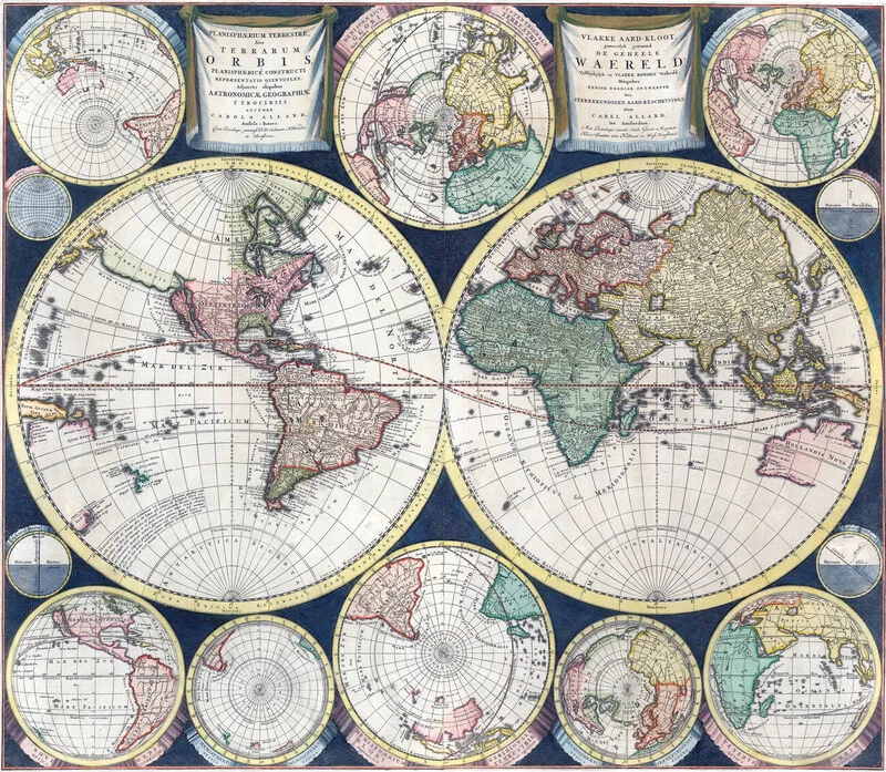Obraz na plátně 1696 multi hemispheric maps of the world - by Carel Allard