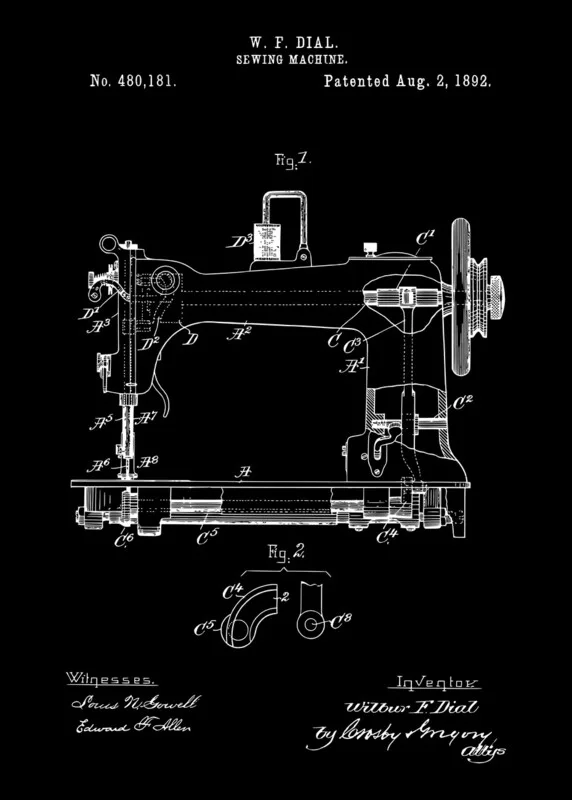 Samolepka 1892 Vintage Sewing Machine Patent Art