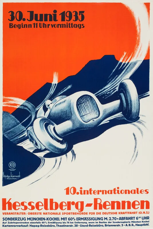 Samolepka 1935 Kesselberg Rennen Racing Poster Germany Klotz Kienast