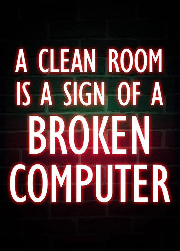 A Clean Room Is A Sign Of A Broken Computer Gaming Neon Quote