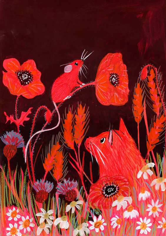Samolepka A Game of Cat and Mouse - Whimsical Art Print