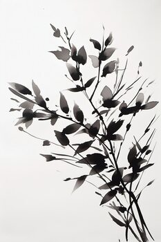 A minimalist print of a branch with leaves