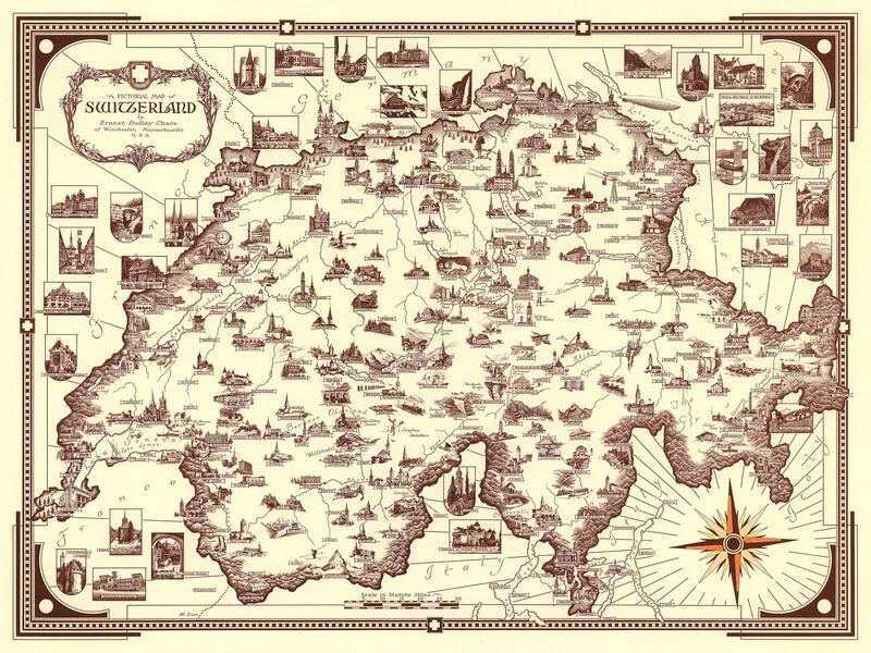 Plakát A pictorial map of Switzerland, by Ernest Dudley Chase 1936