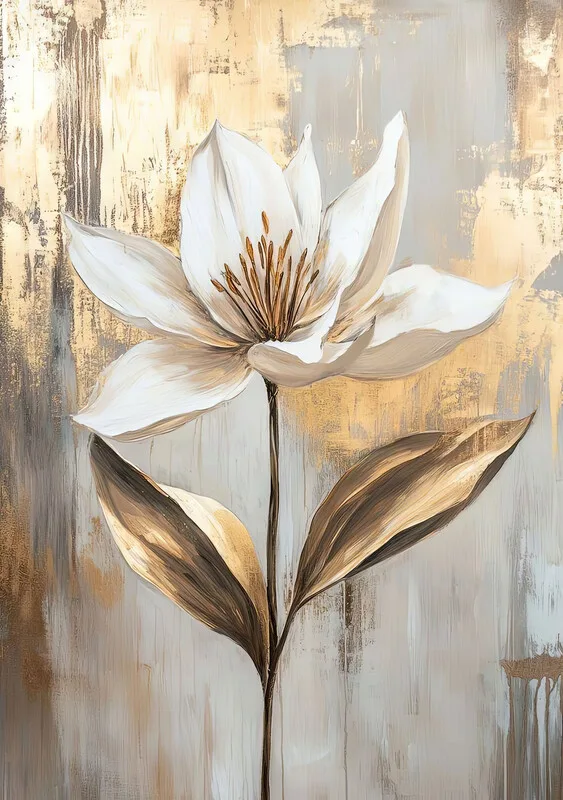 Samolepka Abstract Canvas of Gold & Grey White Lily, Room Wall Decor