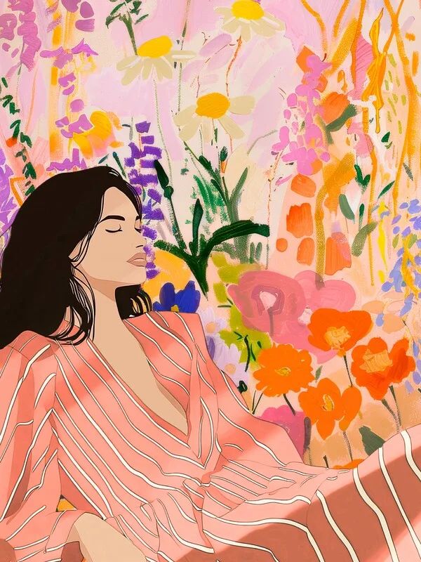 Samolepka Abstract Floral Wall Art, Woman Illustration, Flower Print