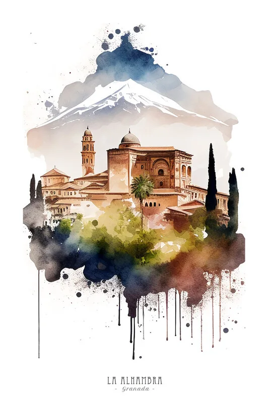Samolepka Alhambra Granada Landscape Inspiration Watercolor Aquarell