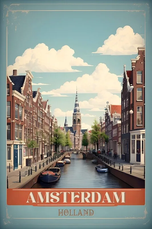 Plakát Amsterdam in Retro: Canal Views and Dutch Charm
