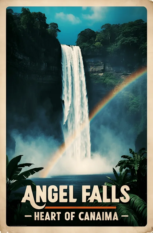 Plakát Angel Falls Vintage Travel Poster World’s Tallest Waterfall