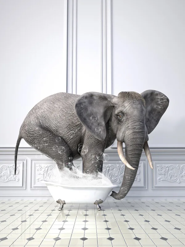 Samolepka Animal in Tub Print Wall Art, funny bathroom print