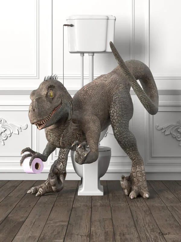 Obraz na plátně Animal on toilet Print Wall Art, raptor Photo, dinosaur art