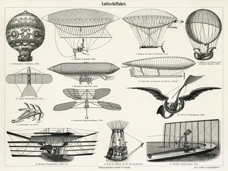 Samolepka Antique Illustration of Flying Machines, Ariships & Balloons