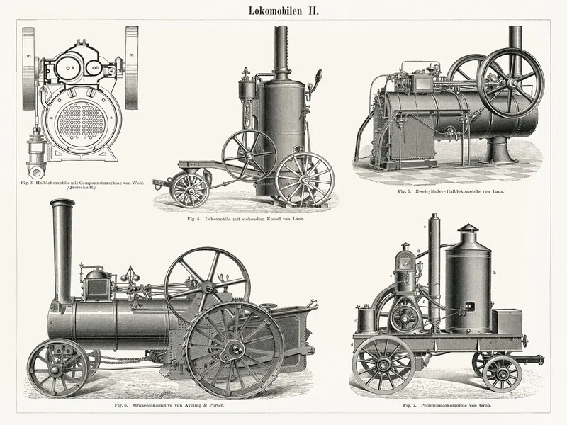 Obraz na plátně Antique Illustration of Locomotives / Engine Trains