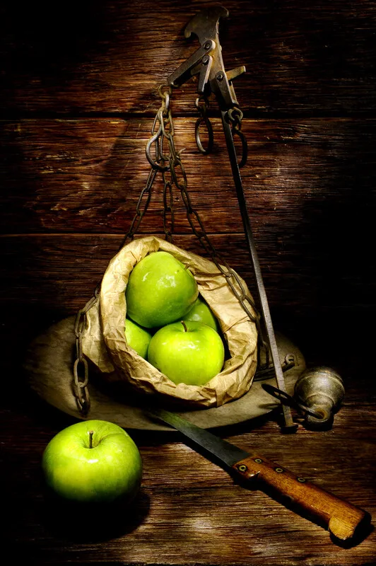 Plakát Apples on a vintage scales
