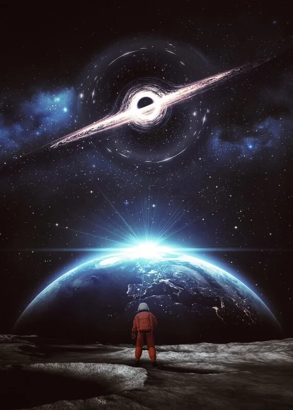Samolepka Astronaut na Měsíci, pohled na Zemi a černá díra ve vesmíru