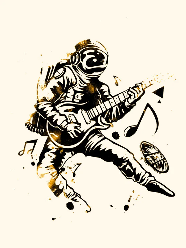 Astronaut playing the Guitar, this Poster is perfect for every stylish Home.