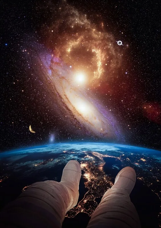 Samolepka Astronaut weightlessness Earth, Galaxy and Black Hole