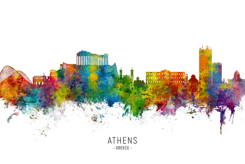Samolepka Athens Greece Skyline Cityscape Painting Watercolor