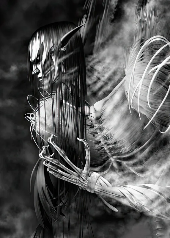 Samolepka Attack in black and white