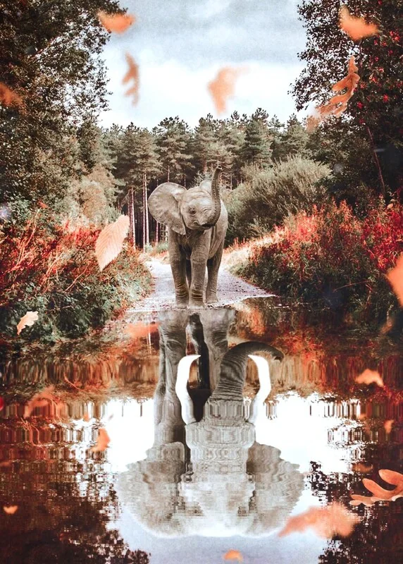 Obraz na plátně Baby Elephant and Autumn Vibes