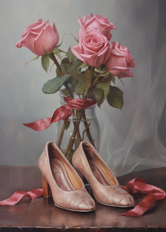 Obraz na plátně Ballet Dancing Shoes Roses Classical Painting