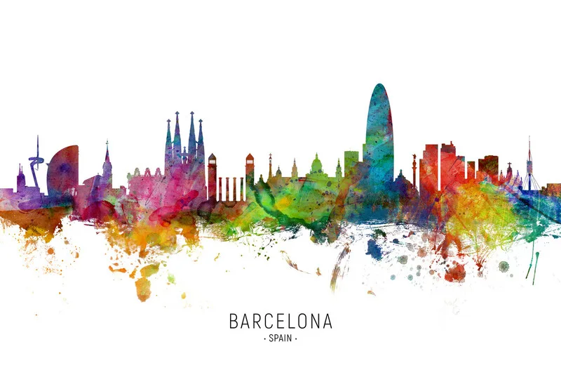 Samolepka Barcelona Spain Skyline Cityscape Painting Watercolor