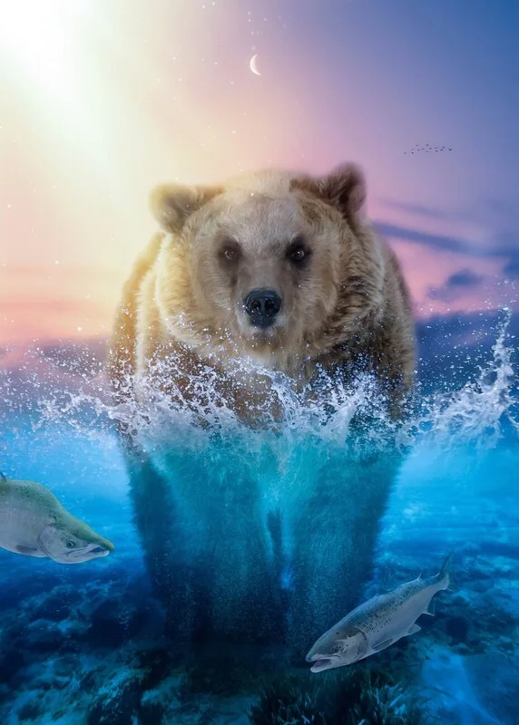 Obraz na plátně Bear fishing for salmon in river