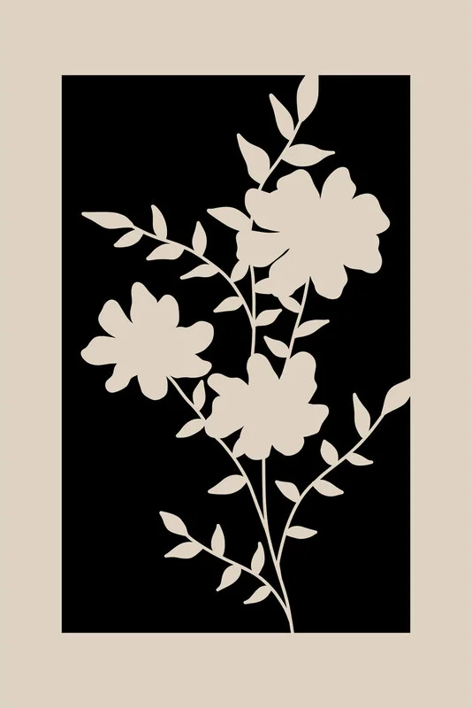 Obraz na plátně Beige & Black Flowers Poster No.2