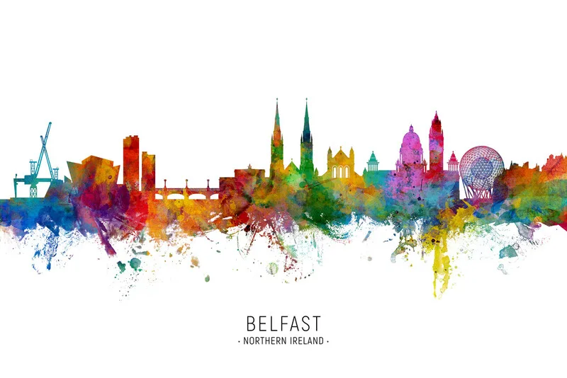 Plakát Belfast Northern Ireland Skyline Cityscape Painting Watercolor