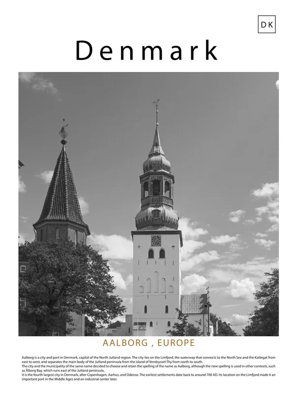 Samolepka Black and white poster of a cityscape of Aalborg, Denmark