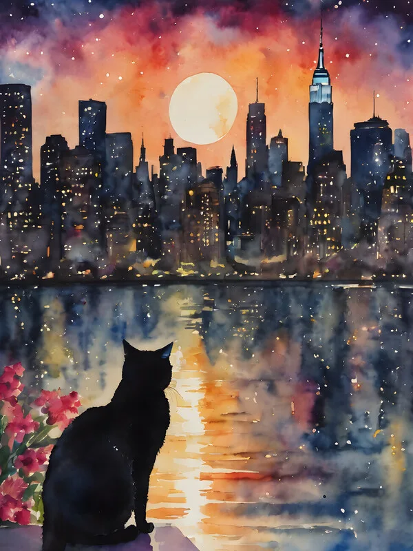 Obraz na plátně Black Cat Watches the New York Skyline