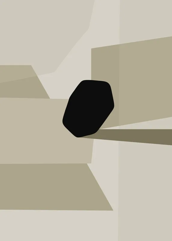 Obraz na plátně Black Stone with Long Shadow Beige Minimalstic Modern Art