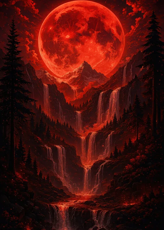 Obraz na plátně Blood Moon Over the Crimson Falls