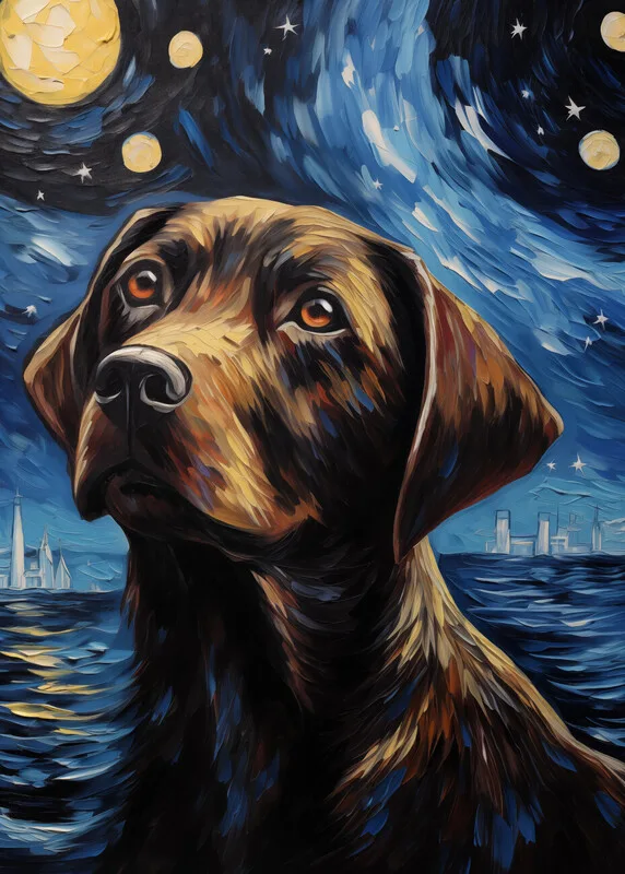 Brown Labrador Dog Animal Pet Classic Oil Painting Portrait