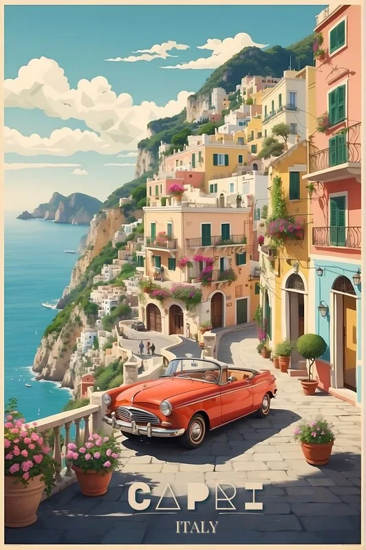Samolepka Capri Splendor: Vintage Travel Poster