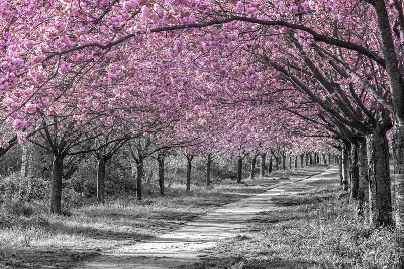 Obraz na plátně Charming cherry blossom alley in pink