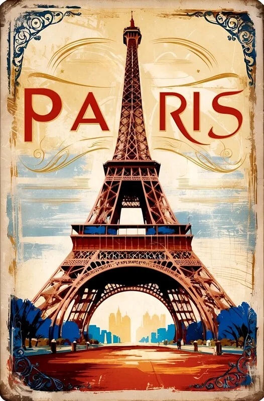 Obraz na plátně Charming Vintage Illustrations of Paris – Timeless Elegance