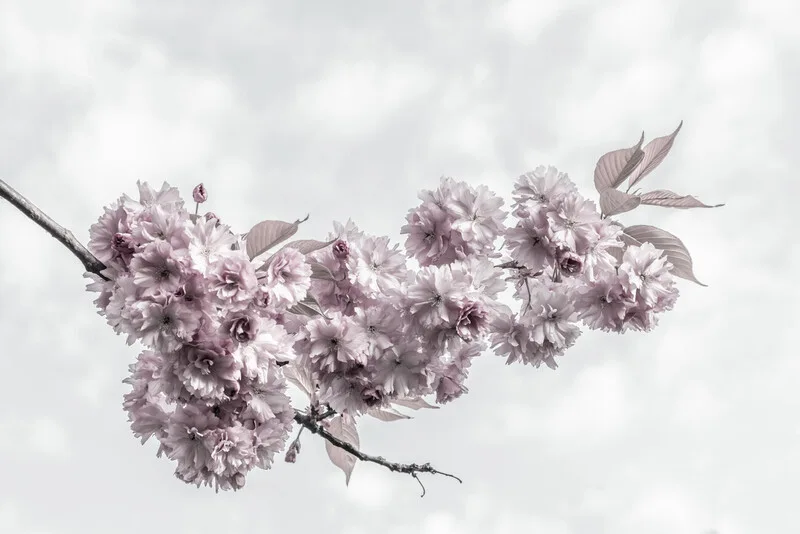 Cherry blossom time marks the beginning of spring. Charming detailed image in delicate pink. Enchanting nature impression.
